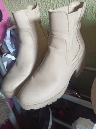 Botines de estilo Chelsea en color beige. Un calzado versátil y moderno. - Diseño tipo Chelsea con elásticos laterales. - Tacón grueso para mayor comodidad. - Suela con relieve para mejor agarre. Usado solo un par de veces