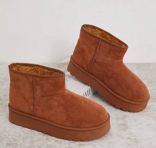 Botines de plataforma color camel, de serraje sintético, muy calentitos y cómodos. Están prácticamente nuevos, perfectos para el invierno. Los vendo porque compré dos tallas más grandes pensando que me iban a quedar bien. Marca: H&M (solo para poder publicar, no es la marca real)
