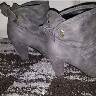 Botín de tacón color gris, detalle de lazo 9 centímetros, muy cómodas.atrás, tacón