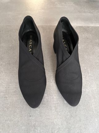 Elegantes botines de la marca Mascaro en color negro. Un diseño moderno y sofisticado. Muy cómodos. En perfecto estado. - Corte cruzado. - Tacón grueso.