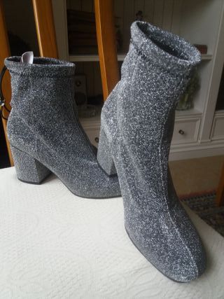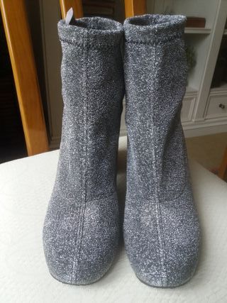 Botín cómodos con un poquito de brillo el tejido y tacón con plataforma