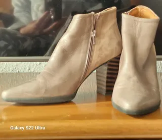 Elegantes botines de piel con un diseño moderno. Número 36, calza grande, da para un 37 - Material: Piel. - Cierre: Cremallera lateral. - Punta: Fina. - Tacón de 8 cm
