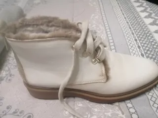 Vendo preciosos y elegantes botines de la marca Hispanitas, de piel auténtica en color azul marino (navy), perfectos para tu día a día y para vestir. Por desgracia para mi elegí mal la talla. Elaborados con piel de vacuno, ante y forro de pelo de alta calidad. El piso es tipo cuña de goma con excelente agarre y llevan cremallera lateral interior para un calce rápido y cómodo. Su precio original fue 139,99 € y se han usado un par de veces, por lo que están en excelente estado. Gracias por mirar!