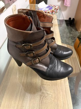 2 pares de Botines piel tacón medio mujer talla 36