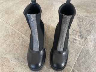 Botines de la marca Hispanitas, sin estrenar. - Diseño moderno con cremallera frontal. - Detalle de logo circular en relieve en el lateral. - Suela gruesa con buen agarre. - Material exterior con textura.