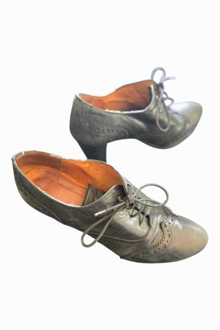 Botines de piel, de media caña usadas 1 vez. El color es entre un gris y un caqui metalizado.