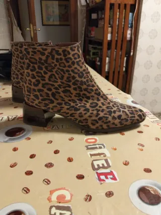 Botines de la marca Hispanitas, sin estrenar y con un llamativo estampado animal print. - Diseño moderno y elegante. - Tacón con acabado brillante.