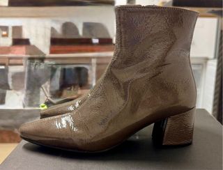 Preciosos y elegantes botines de piel marrón con puntera de charol, cremallera lado interno y tacón de 7cm de la marca - Española HISPANITAS: Comodidad/Diseño y Calidad N° 39. (tiene una pequeña tara en el pie izquierdo lado interno) Precio de compra en el Corte Inglés de 99,90€. No hago envíos.