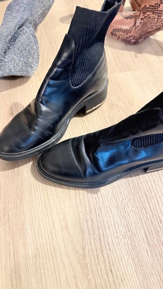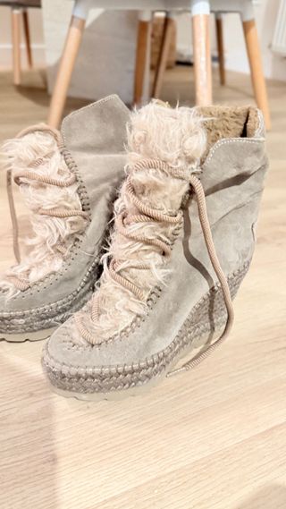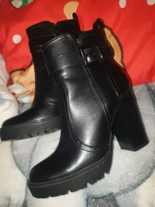 Botines de ante con un diseño moderno y cómodo( usados 1 vez solo) - Material exterior de ante. - Suela de plataforma gruesa. - Detalle de elástico lateral.