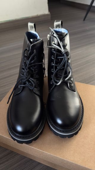Vendo 2 botines sin estrenar en su caja , una blanca y la otra negra la talla de ambas son 37 de marca Levi'S y Pepe Jeans. Son botines kids. - Cierre de cordones. - Cremallera lateral. - Tirador trasero. - Suela gruesa.