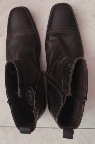 Botines de serraje de piel en color marrón. Tienen un diseño moderno y son muy cómodos. - Material exterior: Serraje de piel. - Cierre de cremallera lateral. - Detalle fruncido en la caña. Dan más talla, no tienen casi uso