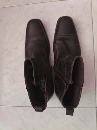 Botines de mujer con un diseño elegante y moderno. - Combinación de ante y piel. - Cierre con tira y hebilla metálica.Puestos solo un rato porque me quedaba muy justo.Ver suela