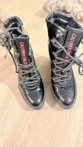 Botas de mujer con un diseño moderno y elegante. - Acabado brillante. - Cierre de cordones. - Suela gruesa.