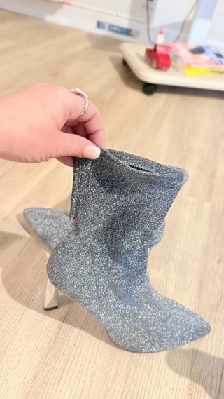 Botines de tacón alto con un acabado brillante. - Diseño elegante y moderno. - Tacón fino y puntiagudo. - Material elástico para un ajuste cómodo.