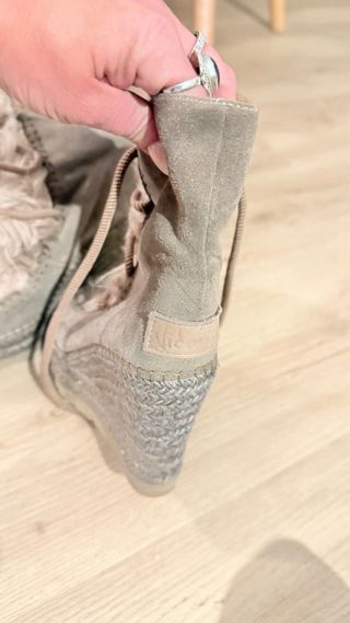 Botines de ante con cuña, ideales para un look casual y cómodo. - Material exterior de ante. - Forro interior de piel. - Diseño con cuña. - Cierre con cordones.