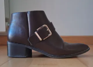 Botines de tacón en color marrón. - Diseño con hebilla. - Tacón de cuña. - usados dos veces. - cómodos.