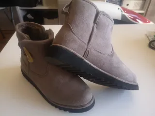 Botas de la marca Mustang en color marrón, talla 39. Son nuevas y están listas para estrenar. - Exterior de ante. - Forro interior de pelo sintético. - Suela de goma. - Detalle de costuras.