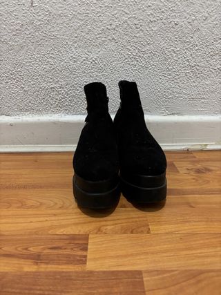 Botín de cuña de 9 cm. - Son nuevos sin estrenar pero la parte interior superior se está pelando. - Diseño con elástico lateral. - Tacón de cuña. - Punta redonda.