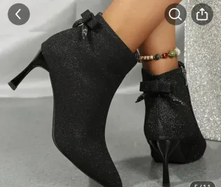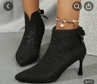 Botines negros con detalle brillante. Son preciosos y quedan como un guante.Puestos solo 20 minutos - Talla CN 36 (EU 36). - Ideales si tienes el pie estrecho. - Si tienes el pie un poco más ancho, se recomienda coger un número más.