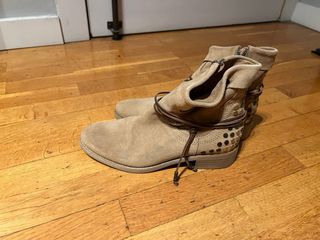 Botines cómodos con un suave forro interior. Nuevo,sin usar, de piel ante - Diseño de caña baja. - Suela de goma antideslizante.