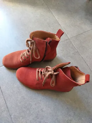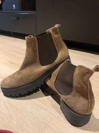 Botines de ante para mujer. - Cierre con cordones. - Detalle de cremallera lateral. - Diseño tipo botín. Están nuevos, los he usado solo una vez. Me han costado 90eur