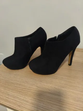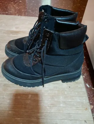 Botines de mujer de Primark en color negro. Son cómodos y versátiles. Exterior de ante. Forro interior de pelo sintético. Suela gruesa. Usado muy poco, en perfecto estado. Talla 37.