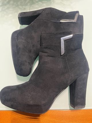 Botines de vestir en color negro. - Cierre con cremallera lateral. - Tacón con forma. - Material exterior tipo ante.