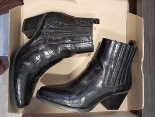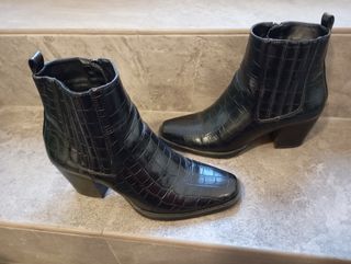 Botines negros muy cómodos!! - Efecto piel de cocodrilo. - Tacón cuadrado. - Punta cuadrada. - Cremallera lateral.