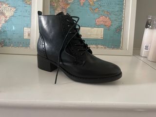 Botines de la marca ARO en color negro. Nuevos. Llevados muy pocas veces por question de necesitar una talla mas grande por rotura de dedo de pie. Normalmente cuestan unos 70/80€. - Fabricados en ante y piel. - Cierre con cordones. - Diseño tipo botín.