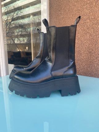 Hermosos botines de Pull&Bear, talla 35, nuevos sin etiquetas. Color negro, estilo plataforma con tacón ancho de aproximadamente 11 cm, muy cómodos y estables al caminar. Ideales para combinar con shorts, faldas, vestidos midi o mini y darle un resalte espectacular a tus outfits ✨ ✔ Nuevos, sin uso ✔ Tacón ancho y cómodo ✔ Súper versátiles y modernos ✔ Envíos rápidos