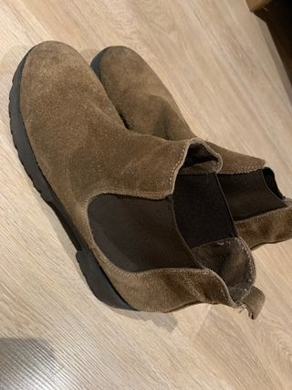 Set de 3 pares de botines de ante natural hechos a medida, talla 36 (ideal también para pie estrecho). Colores beige claro, marrón oscuro y negro — perfectos para looks casual o diarios. Material: ante auténtico. Excelente estado, poco uso, cómodos y versátiles. Precio por las 3 pares: 90 € (negociable razonablemente). Recogida en Barcelona