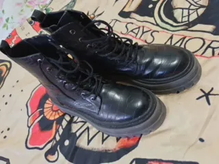 Botas de estilo militar con un diseño moderno y atrevido. Perfectas para añadir un toque único a tu look. - Acabado texturizado tipo piel de cocodrilo. - Suela gruesa y robusta. - Cierre con cordones.