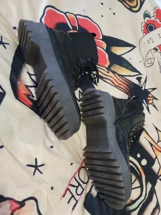 Botines de la marca Refresh en color negro. Cuentan con un diseño moderno y suela de plataforma. - Cierre de cremallera lateral. - Tirador trasero para facilitar su puesta. - Detalle de logo en la caña. - Suela de plataforma gruesa.usados solo dos veces,me quedan algo grandes .