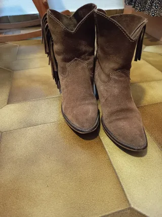 Botines de ante de la marca Mango. Usados un par de veces. No tiene manchas ni nada. Los vendo por una dolencia en los pies que me impide ponerme Tacón. - Color marrón. - Talla 38.