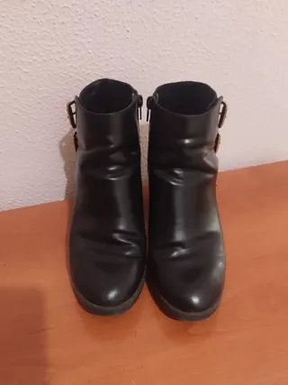 Botín de tacón medio en muy buen estado. - Diseño elegante. - Cierre con hebilla dorada. - Tacón grueso para mayor comodidad.