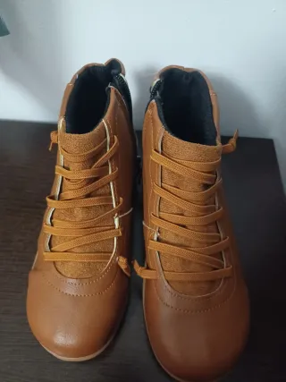 Botines de estilo casual en color marrón. - Cierre de cordones. - Detalle de cremallera lateral. - Diseño tipo botín. Están sin estrenar, las compré por Internet y no lo puedo descambiar