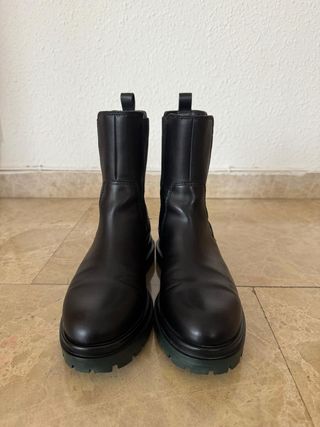 Botas de caña media con suela gruesa. - Diseño tipo chelsea. - Detalle de tira en la parte trasera. - Suela de goma con relieve.
