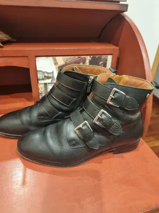 Botines piel negros hebilla dorada T38