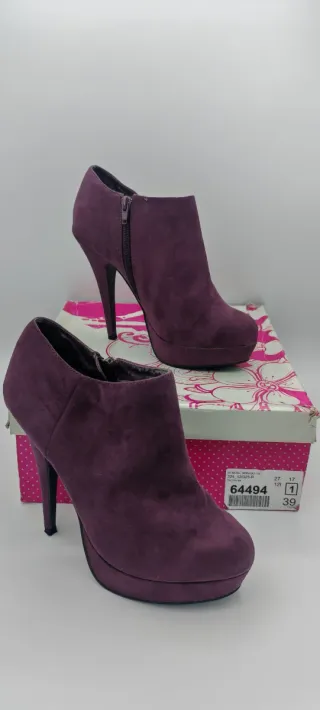 Botines tacón plataforma morados talla 39