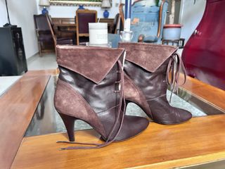 Botines de piel de la marca Gloria Ortiz. Botines de piel talla 38. Prácticamente nuevos. Solo un uso. Altura de tacón 9 cm. - Material exterior de piel y ante. - Diseño con cordones. - Tacón alto.