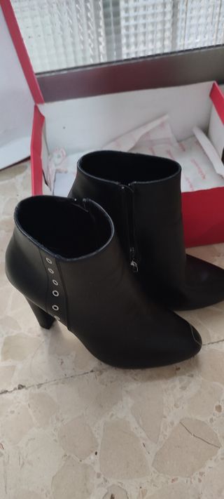 Botines de tacón con plataforma. - Diseño moderno y elegante. - Cremallera lateral para facilitar su uso. - Tacón grueso y suela de goma.