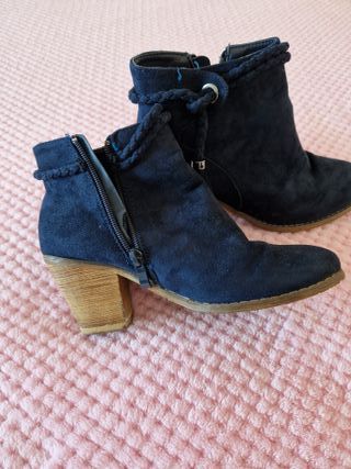 Botines de ante con un diseño moderno y atrevido. Solo lo he usado dos veces. - Material: Antelina - Tacón grueso y alto - Plataforma delantera - Cierre de cremallera lateral