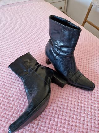 Botines de piel,negras, talla 38 española, usadas poco y bien cuidadas. En muy buen estado. Ver fotos para valorar. De marca española "Laura Azaña. Fabricante nacional, compradas en El Corte Ingles. Muy cómodas.Envío en 24 h., muy bien embaladas en caja. Leer mis reseñas y no dudes de preguntar.Las dejo a precio económico y te puedes aprovechar.
