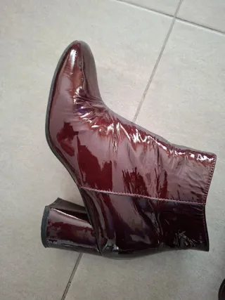 Botines de charol con tacón. - Color burdeos - Acabado brillante. - poco uso