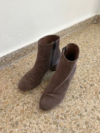 Botines de ante en color marrón. - Tacón grueso. - Cierre de cremallera lateral.