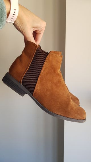 Botines de estilo Chelsea con elástico lateral. Botines marrones de Primark talla 39 (es grandecita). Poco uso, buen estado. En una tiene un pequeño arañazo como se ve en la foto. #botasbajas #botinesmujer #botinesmarrones #botinespiel #botinesdeante #boots #brownshoes #pieldeante #botinesconelástico #botinesprimark #botasbajas #botasbajas39 #botasbajas40 - Material exterior tipo ante. - Suela de goma. - Diseño cómodo y versátil.