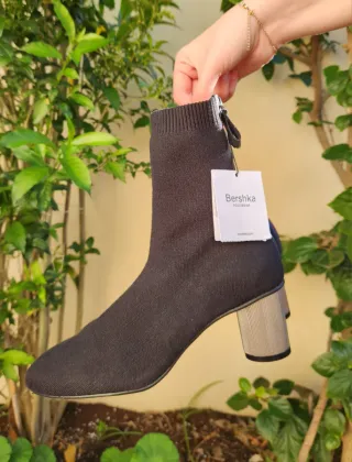 Botines de Bershka nuevos con etiqueta talla 37. Son negros tipo calcetín con tacón y cremallera con filos rojos detrás. Son muy bonitas y combinables! Le invito a hacer un lote con otras prendas de mi armario 😊 Acepto ofertas razonables Hago envíos o entrego en mano