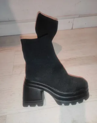 Botines negros estilo coquette, talla 38. Perfectos para un look moderno. Están prácticamente nuevos - Material exterior de ante. - Detalle de elástico lateral. - Suela gruesa y resistente. Cremalllera