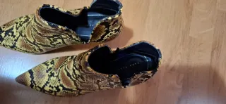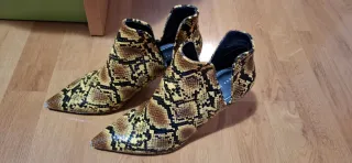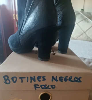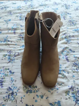 botines preciosos, comprados hace una semana pero por un problema en mi pie no son adecuados y no los puedo devolver porque corté la etiqueta. Solo me los he puesto un rato asi que están practicamente para estrenar y quedan preciosos puestos y muy estilosos como se ve en las fotos. Precio normal sobre 70€. Se entrega en mano y con su caja original