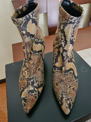 Botines de tacón con un diseño elegante y moderno. Nuevo a estrenar - Efecto piel de serpiente. - Tacón grueso. - Cierre de cremallera.